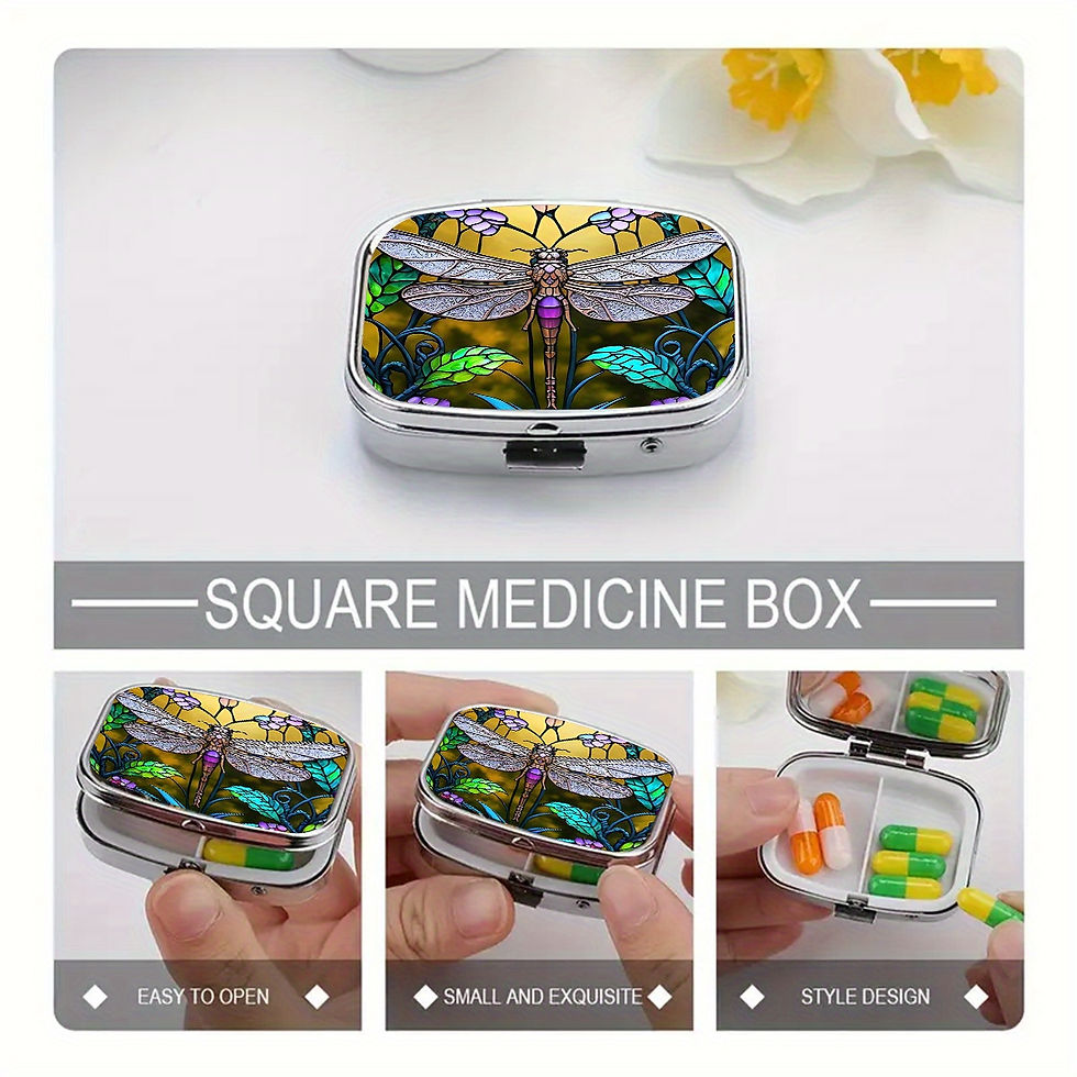 1pc Green Dragonfly Pill Box, 2 Compartment Medicine Pill Case, Compartment Port