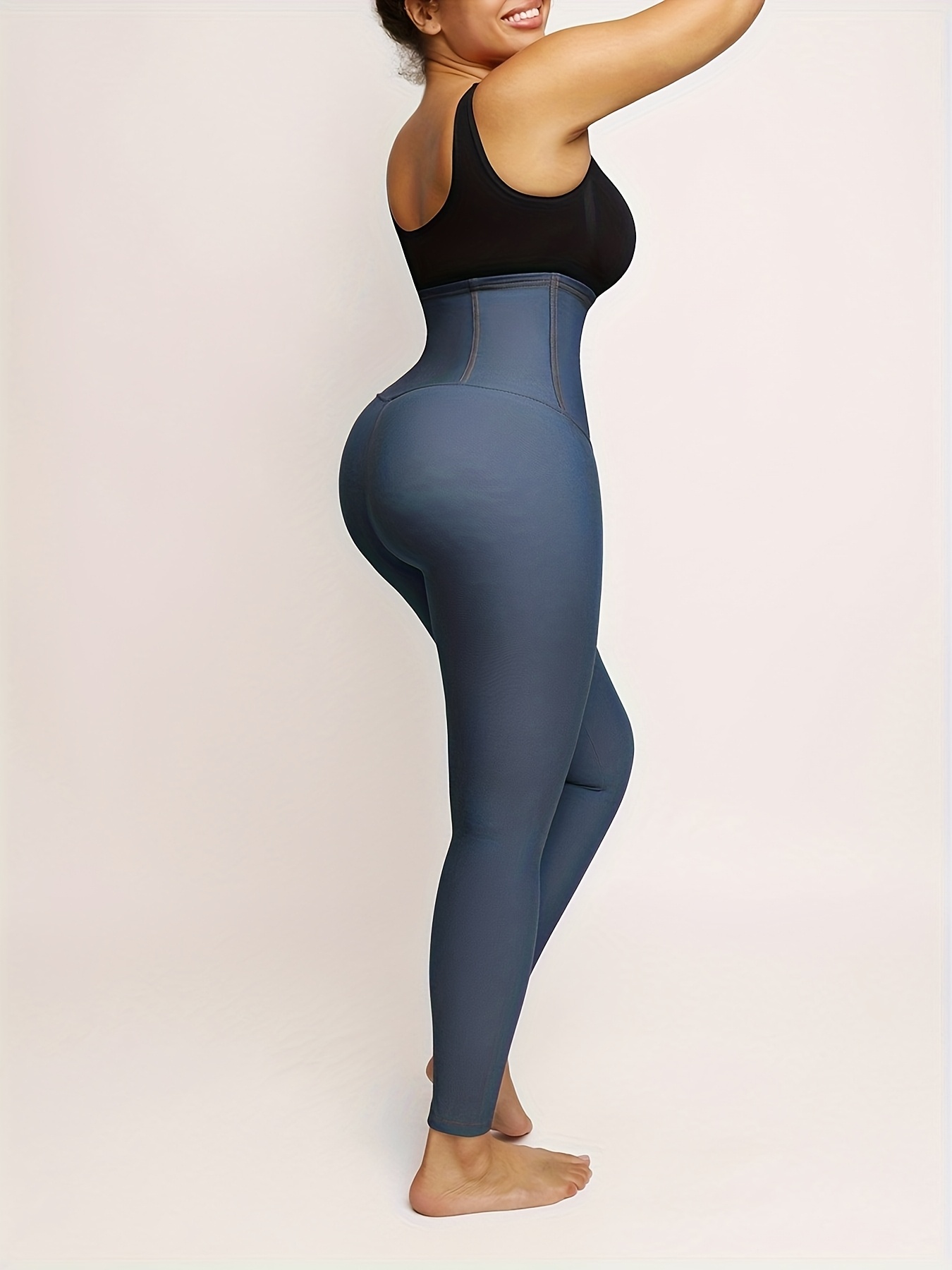 · Features a high waist design in a solid color, providing coverage and support in a jegging style.