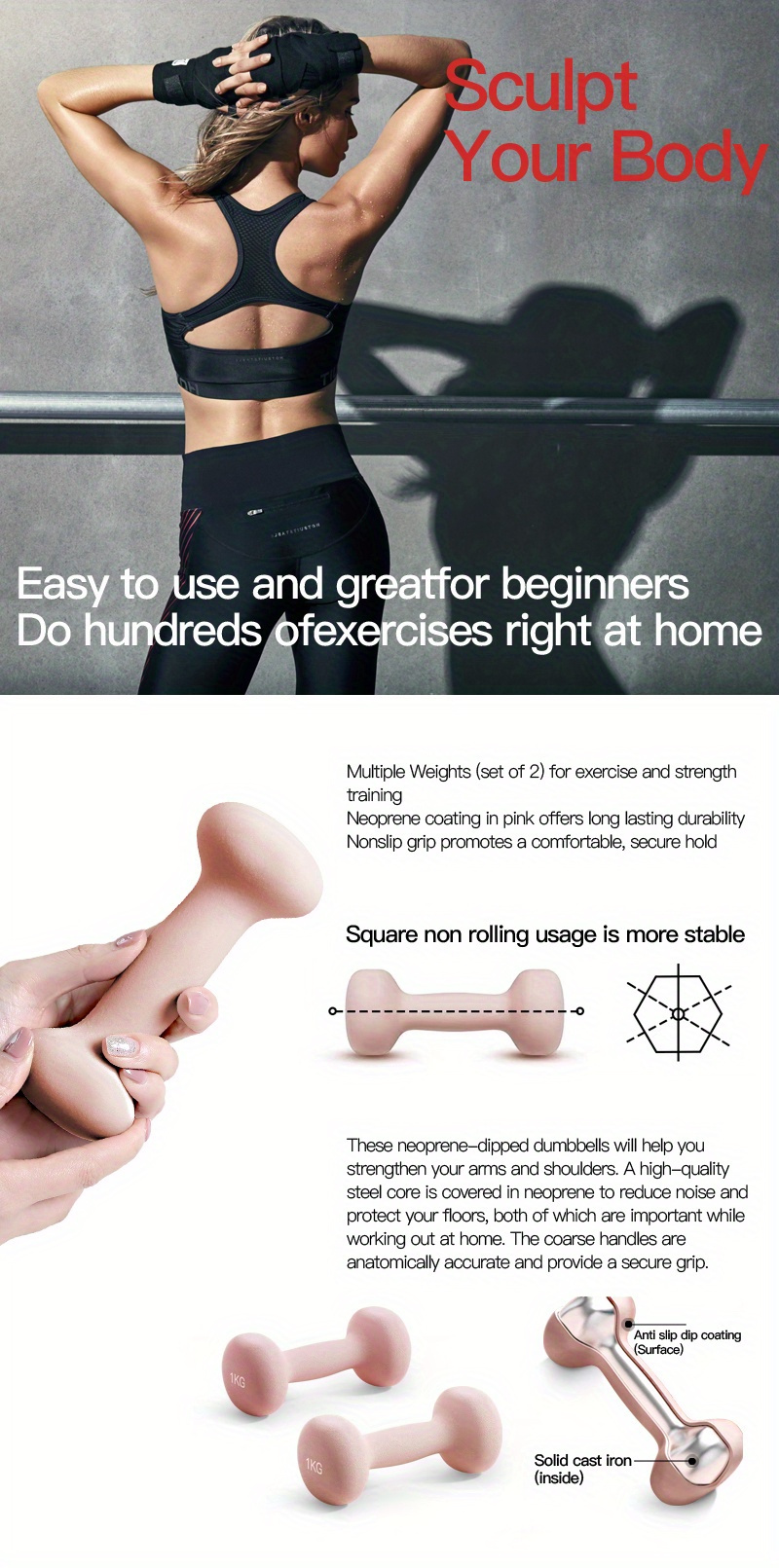 1 Pair, High-density Solid Iron Dumbbells, Home Outdoor Strength Training Equipm