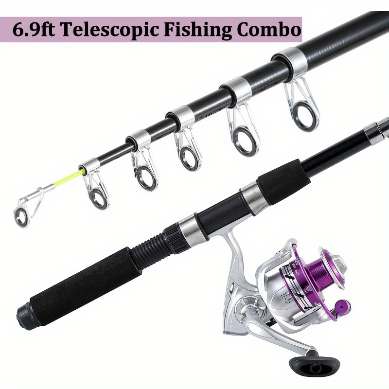 Fishing Pole Combo, 6.9ft 2Pcs Telescopic Rods Set, Collapsible Carbon Fiber Fishing Rods, 2PCS Spinning Reel Set with Bag Freshwater Fishing Rod and Reel Combos Kits