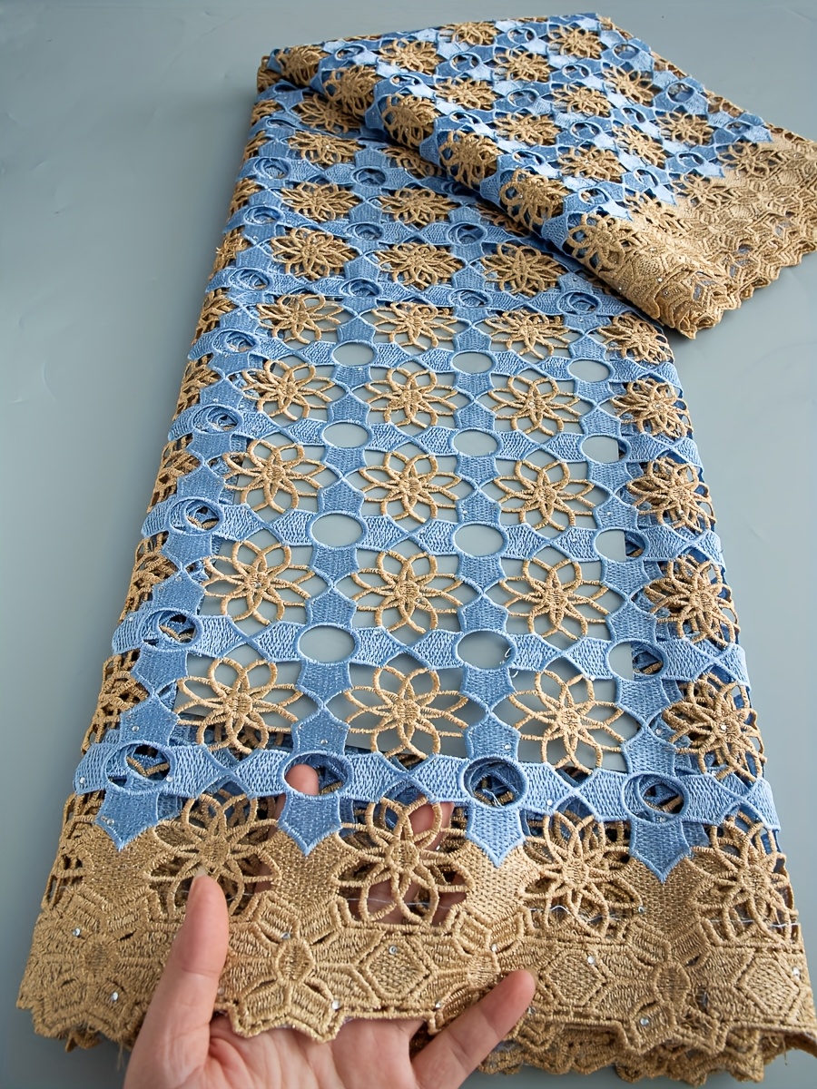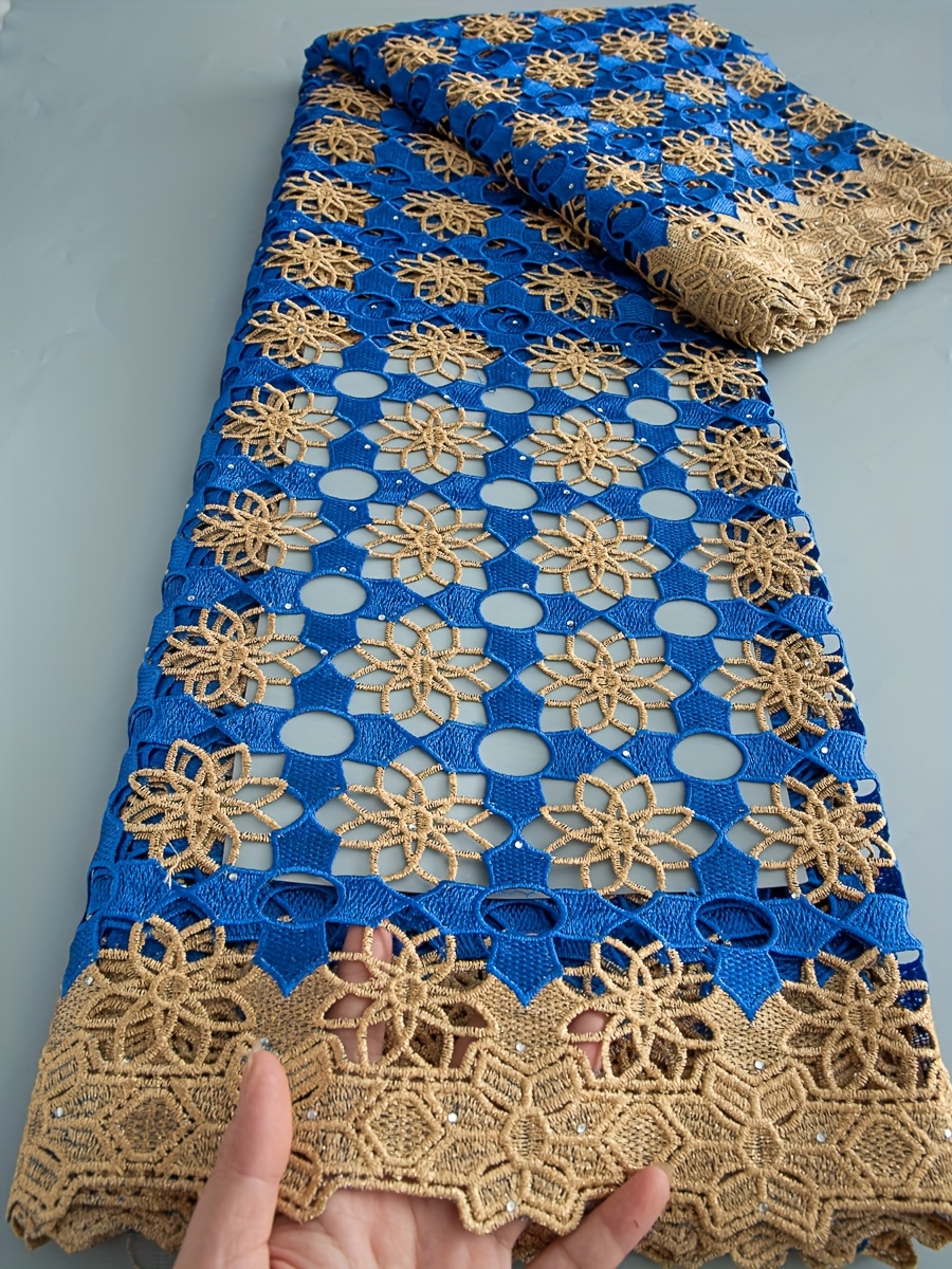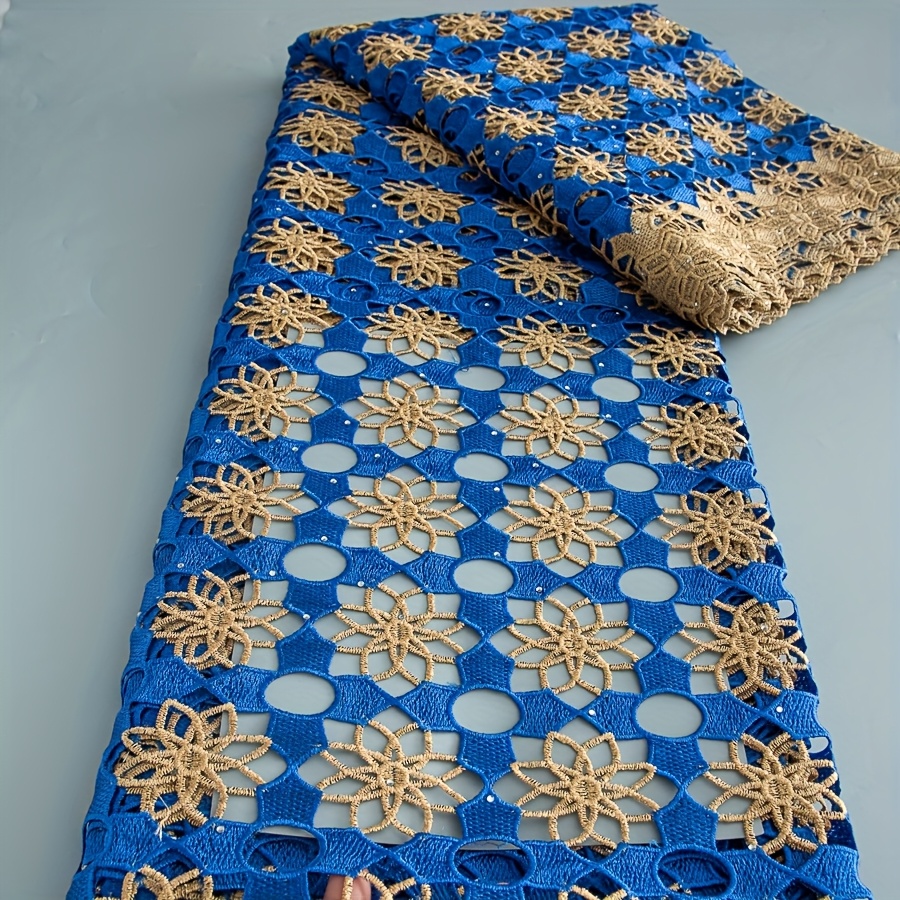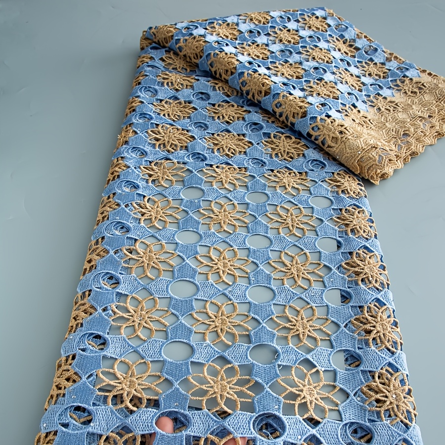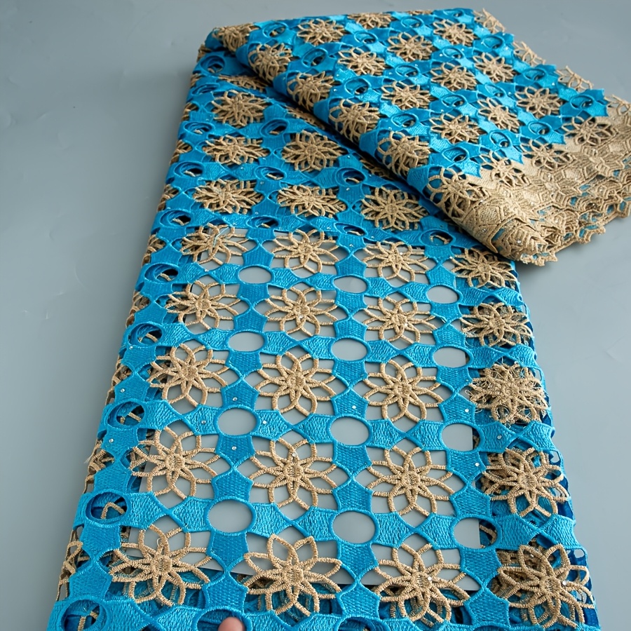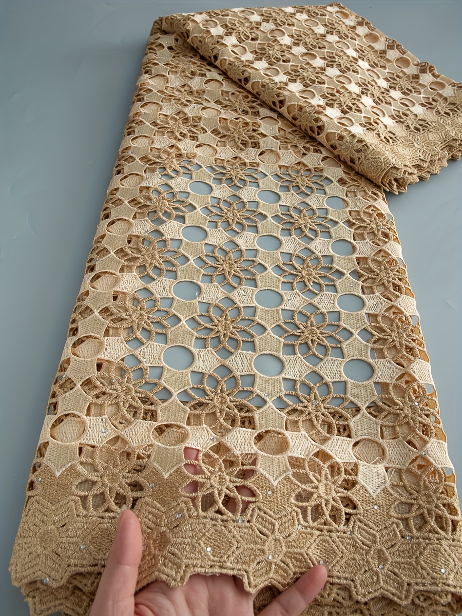 5 Yards/Piece African Nigerian Water-Solvable Guipure Lace Fabric with Rhineston