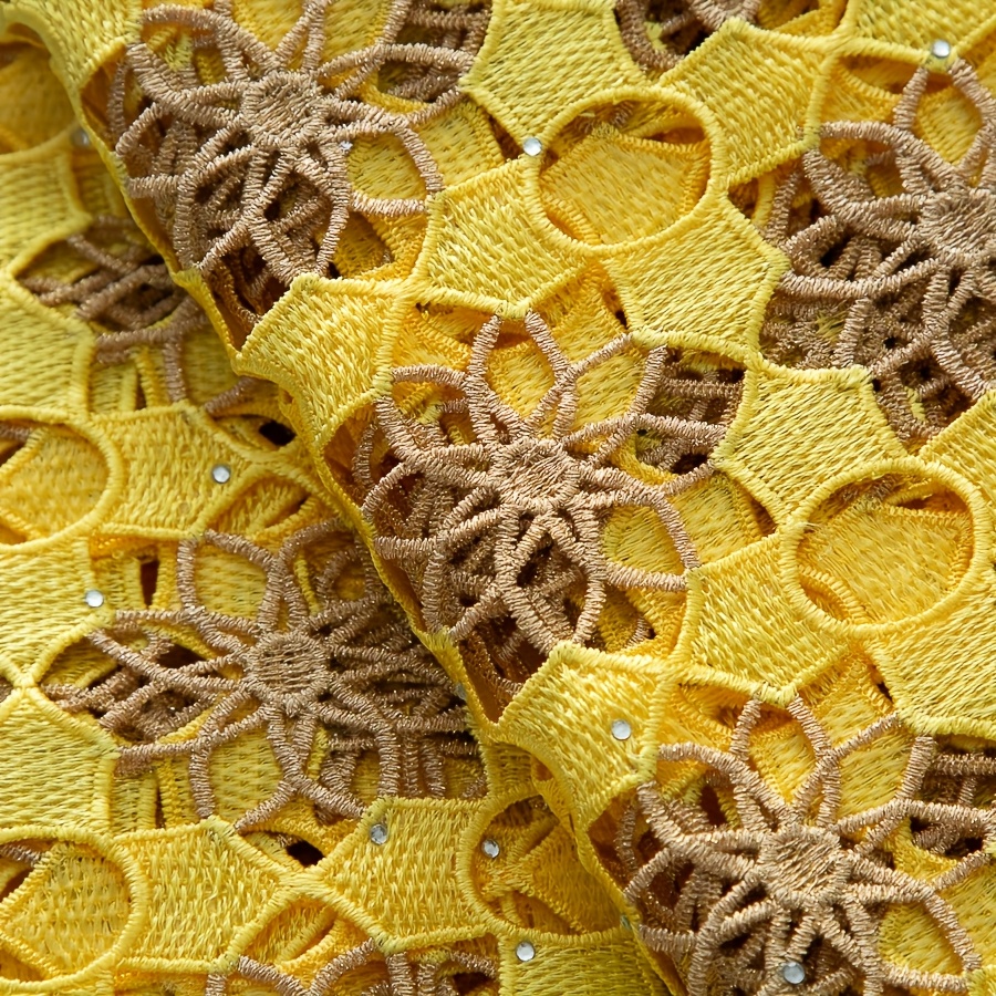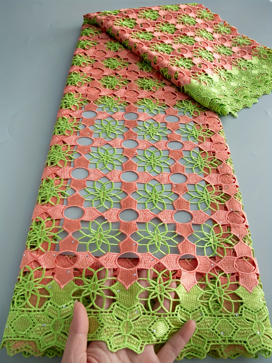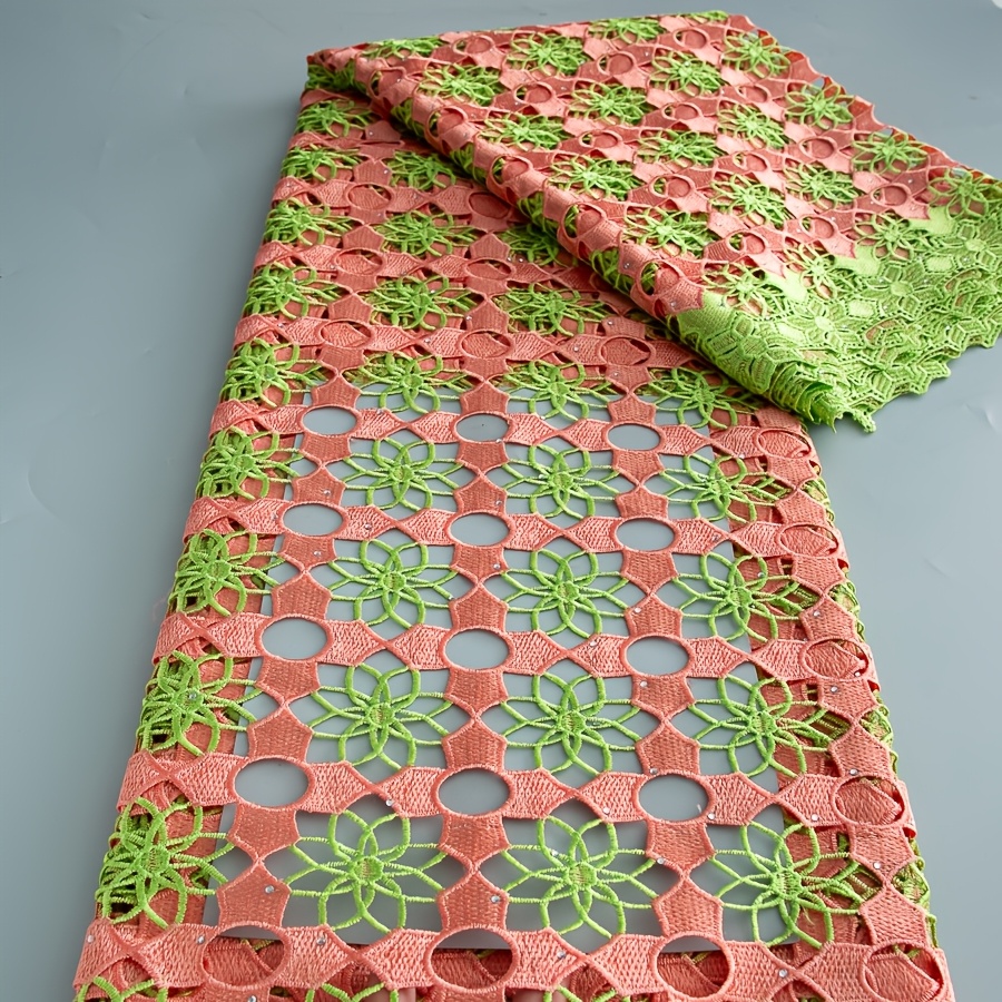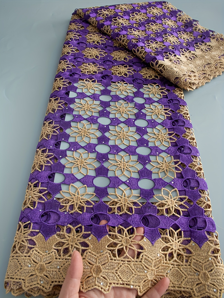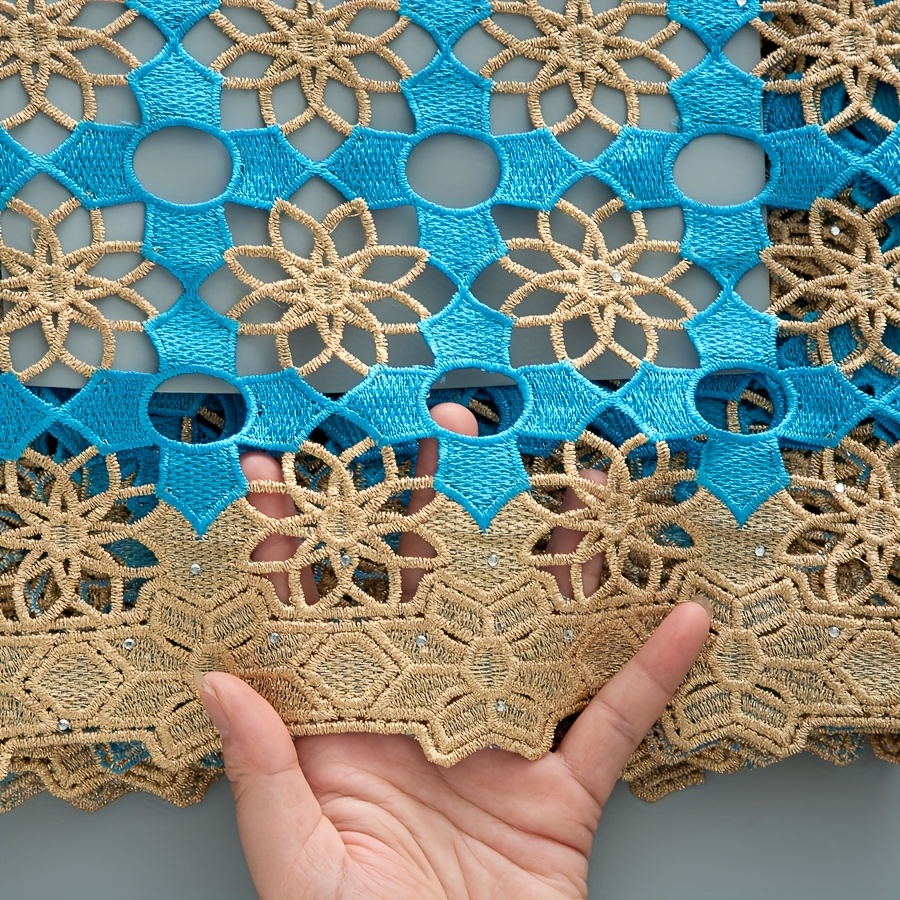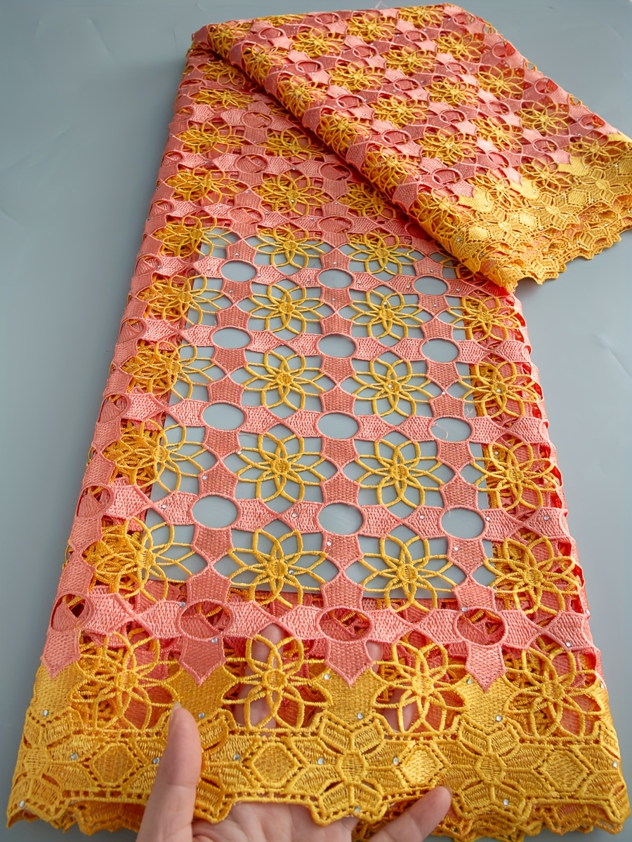 5 Yards/Piece African Nigerian Water-Solvable Guipure Lace Fabric with Rhineston
