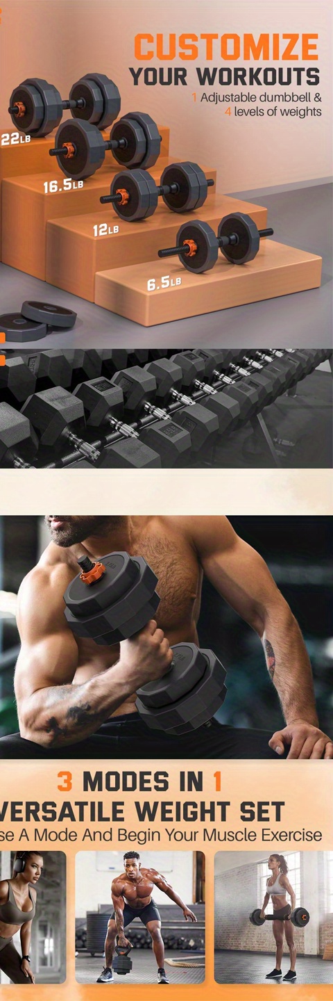 Adjustable Weights Dumbbells Set, 44LB/ 55LB/ 66LB Free Weights, 3 in 1 Mutiweig