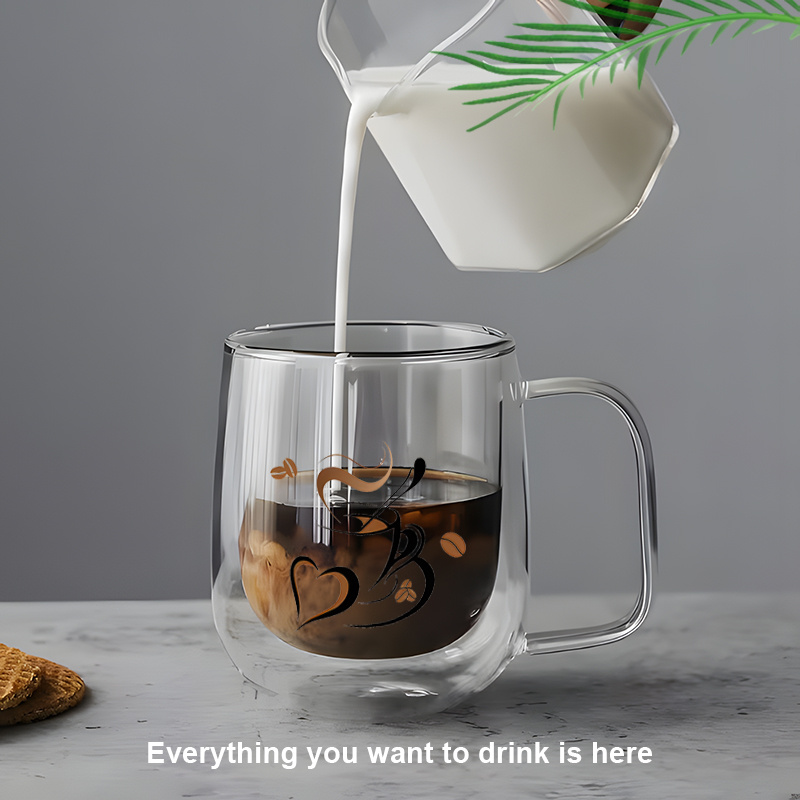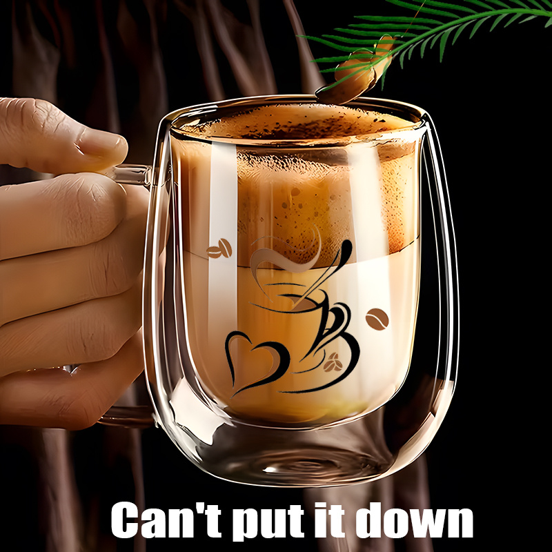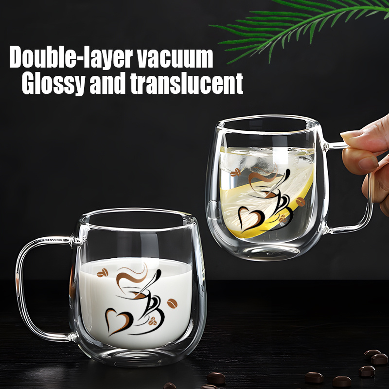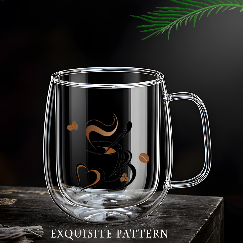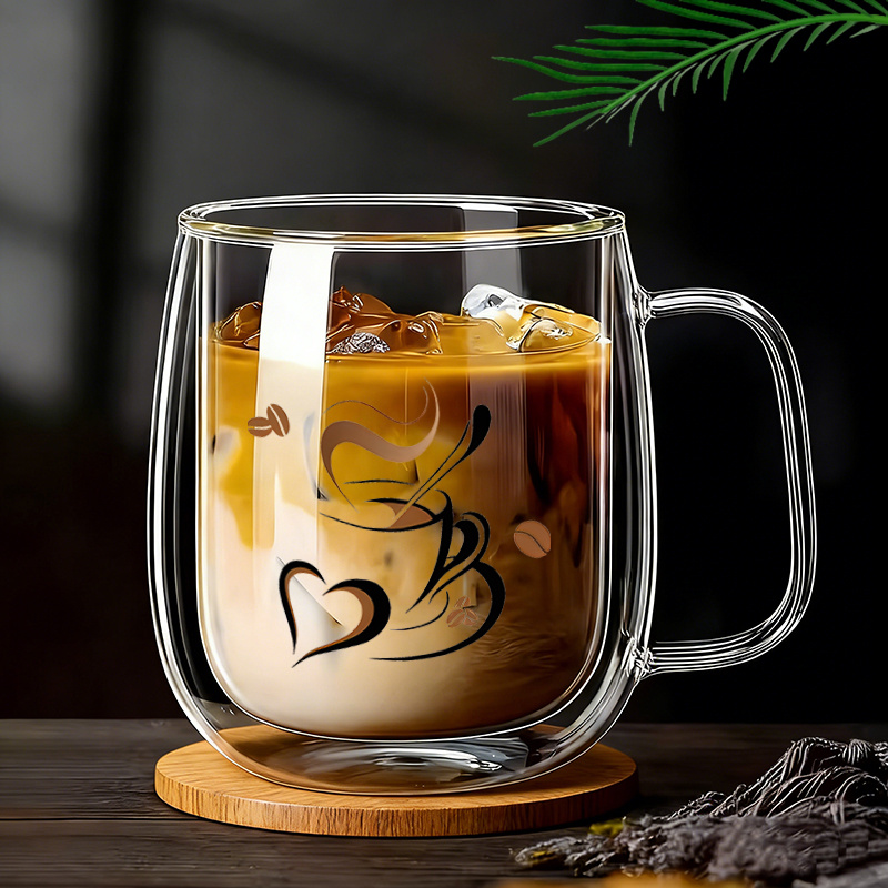 Double-layered Borosilicate Glass Coffee Cup, Print, Dual-use Hot and Cold. Sui