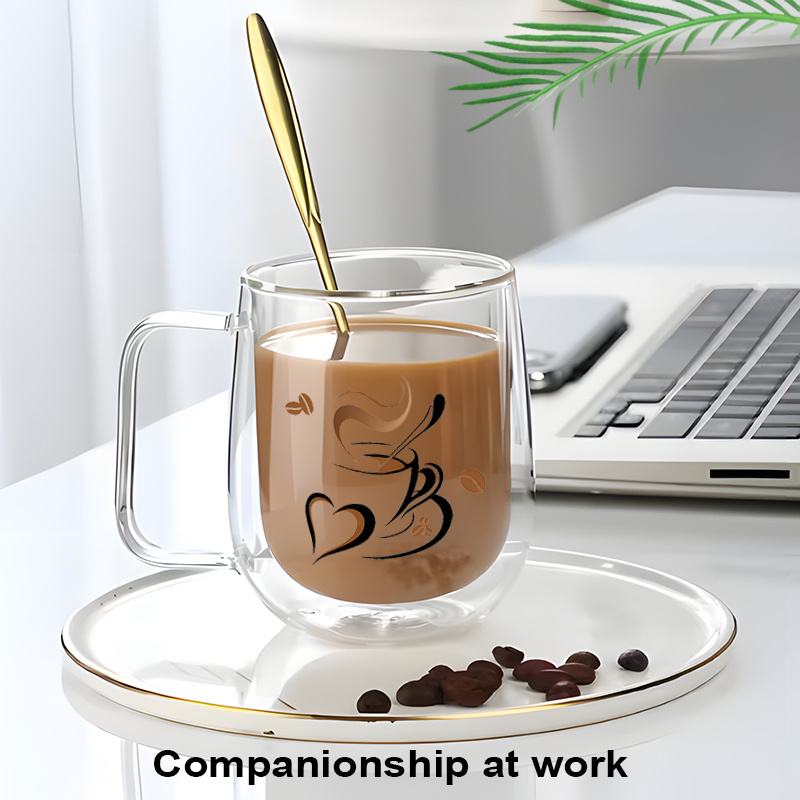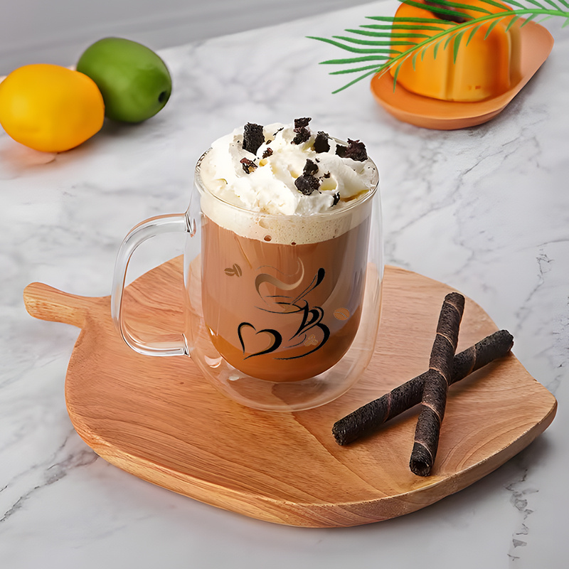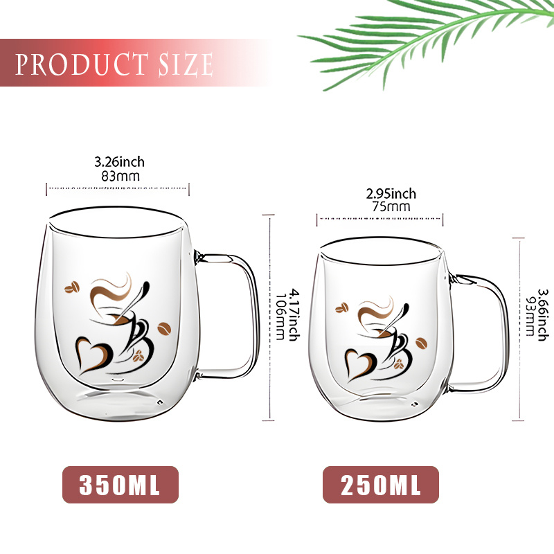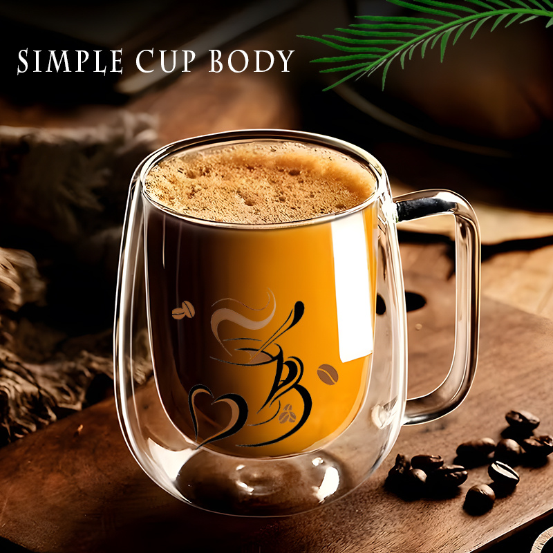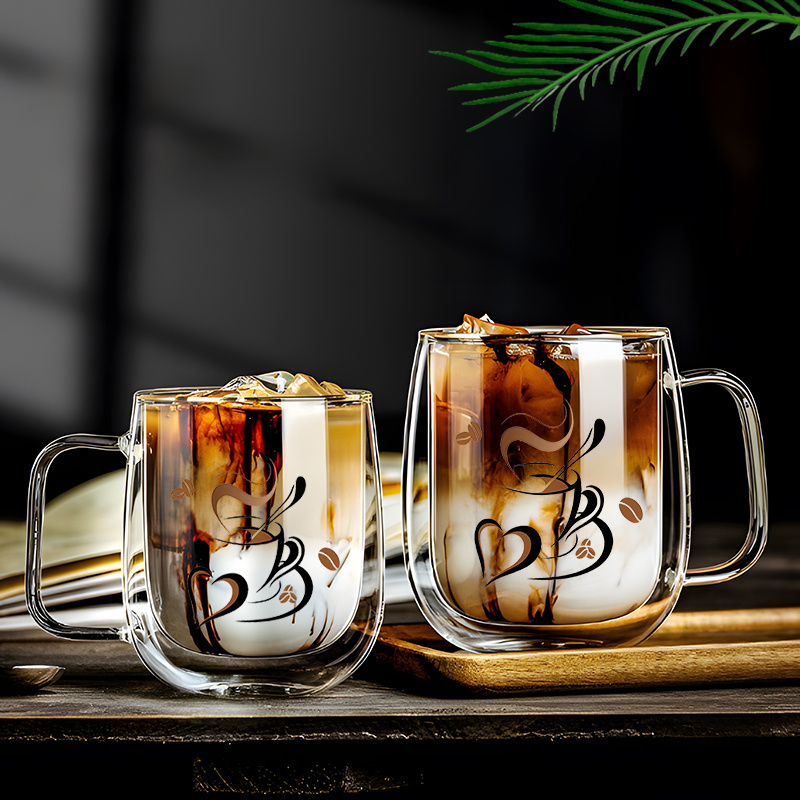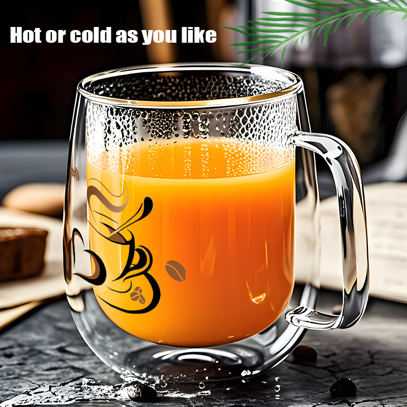Double-layered Borosilicate Glass Coffee Cup, Print, Dual-use Hot and Cold. Sui