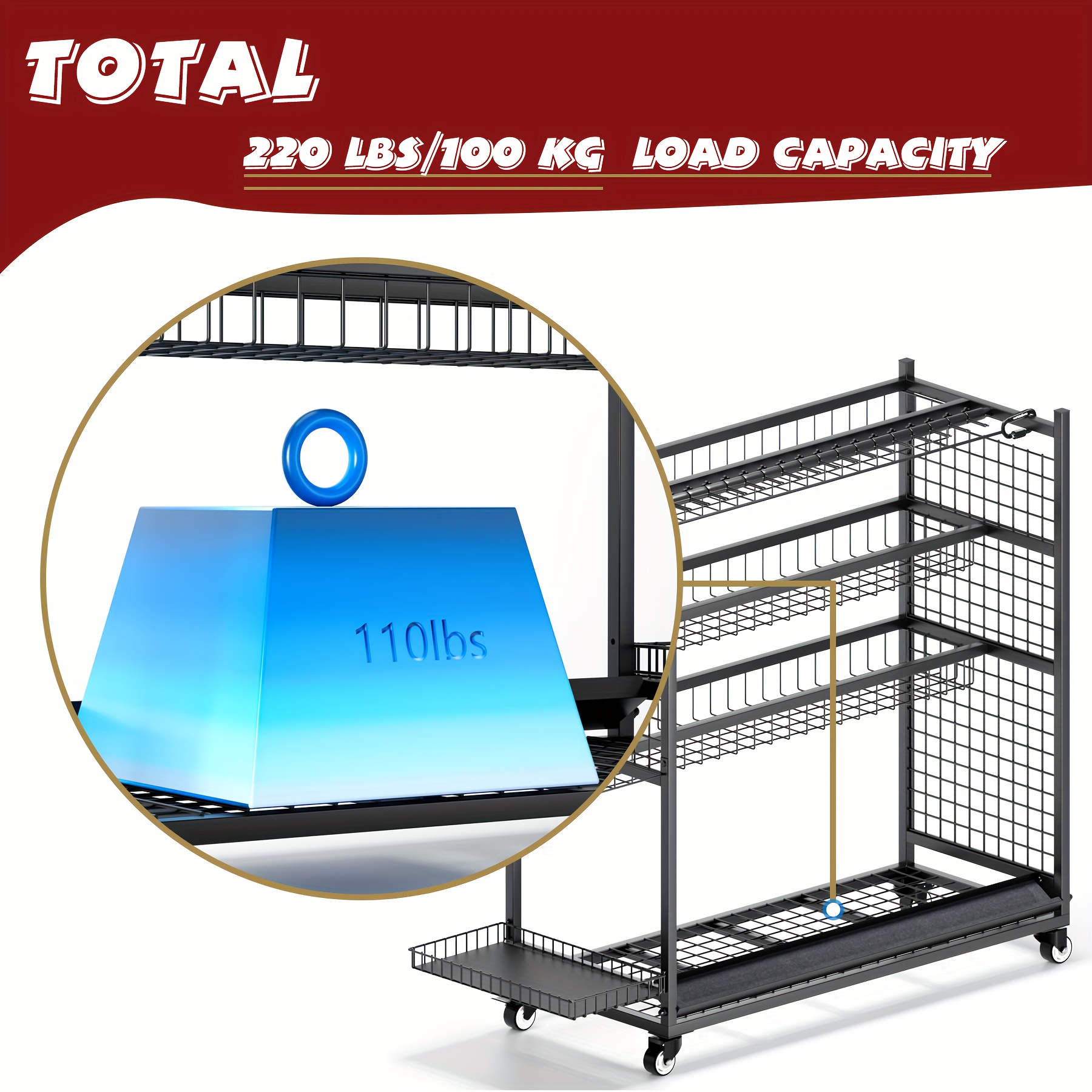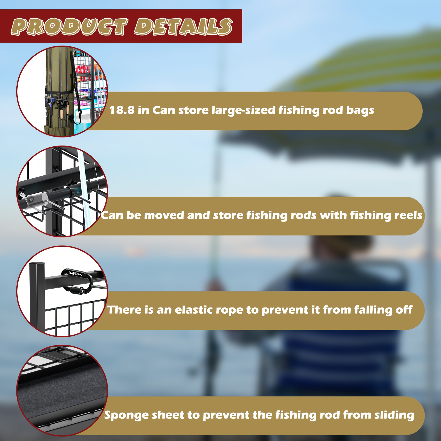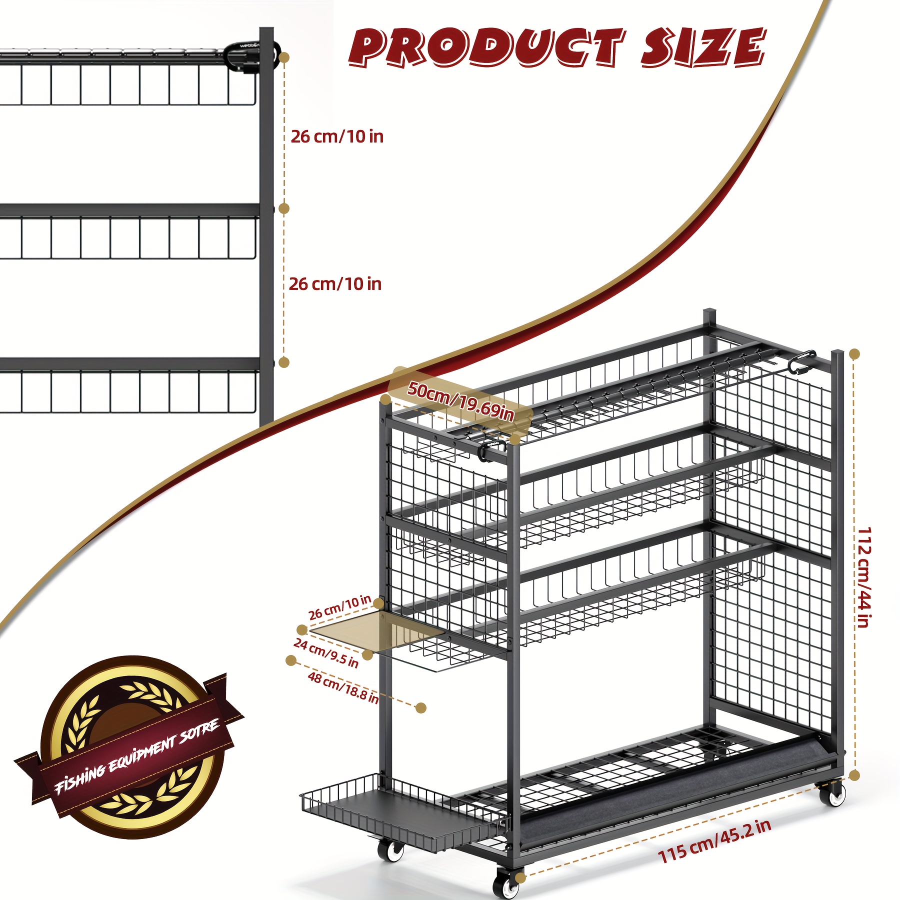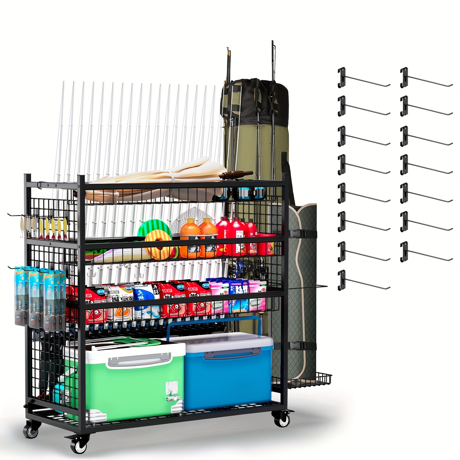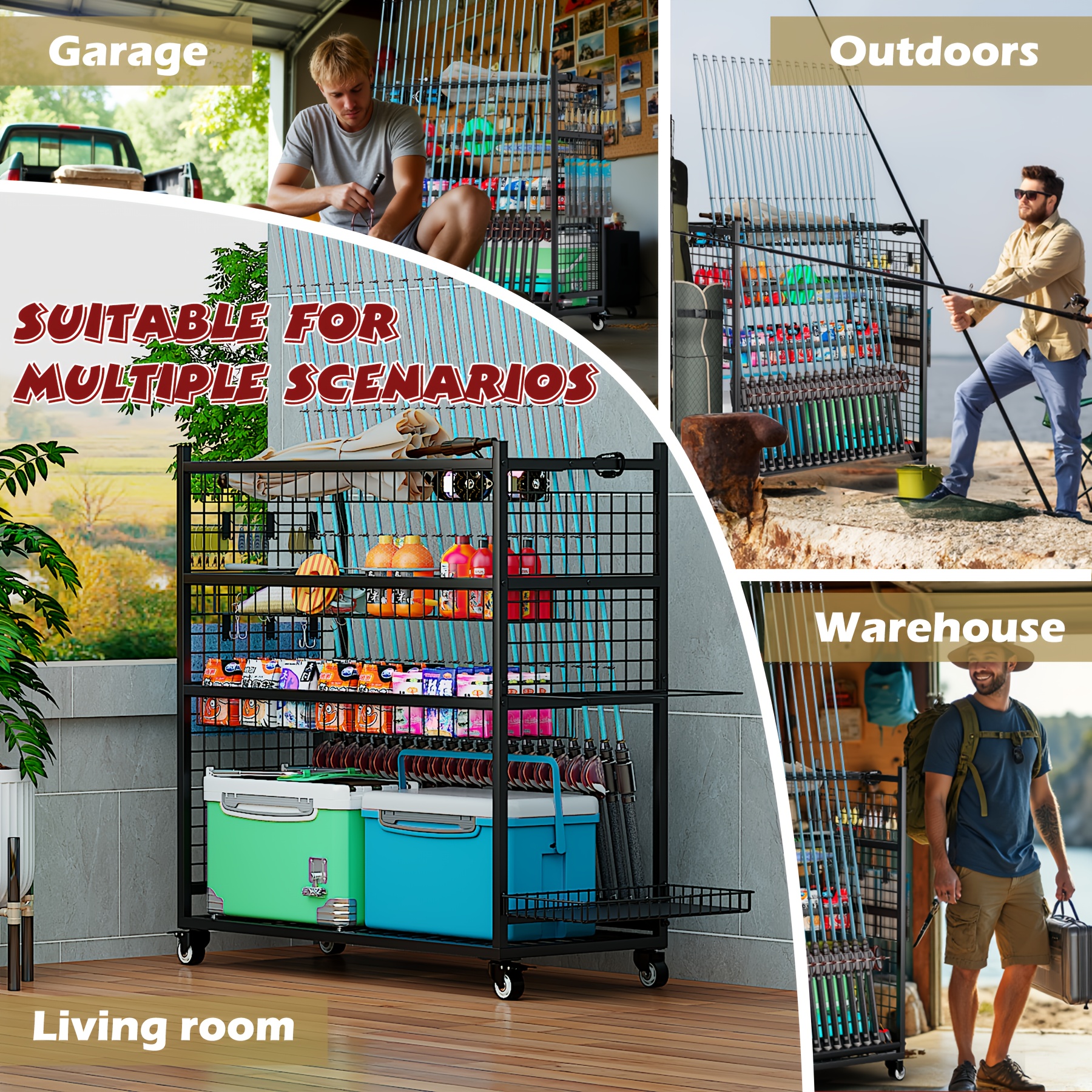 Extra Large Fishing Rod Storage Cart with 15 Hooks & 4-Wheel Mobility - Heavy-Du