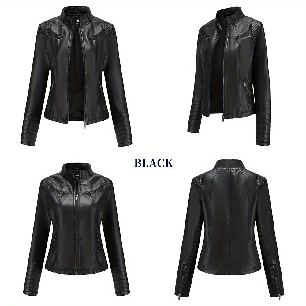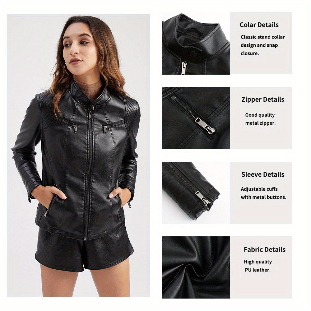 Women'S Jackets Coat, Full Zip Motorcycle Short PU Moto Biker Jacket Tops Outwea